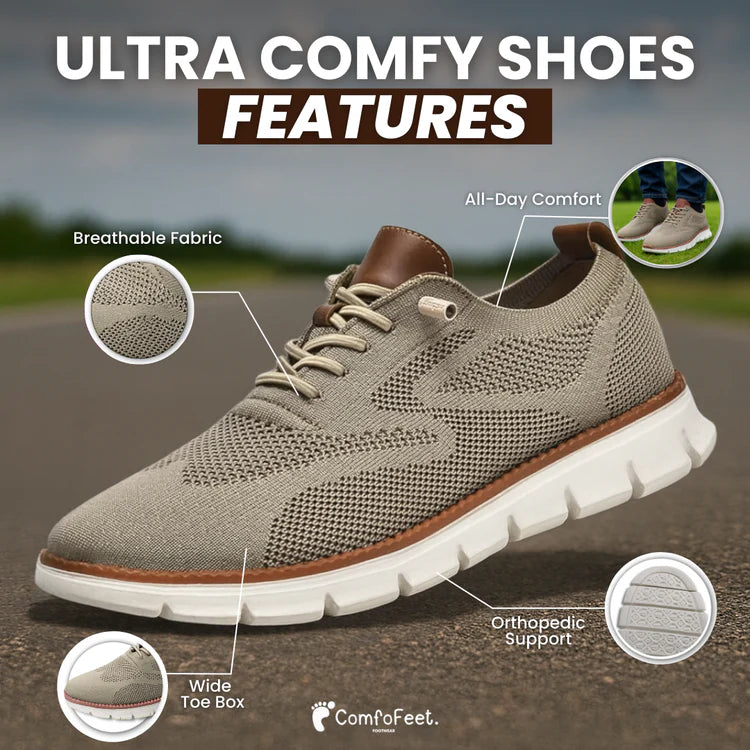 Tired of wearing stiff shoes that lack cushioning and leave your feet aching halfway through the day? ComfoFeet’s Ultra Comfortable Orthopedic Shoes are here to change that. With a wide toe box and superior orthopedic support, our shoes strike the perfect balance between style and comfort. No more foot pain—experience unmatched comfort all day long.
