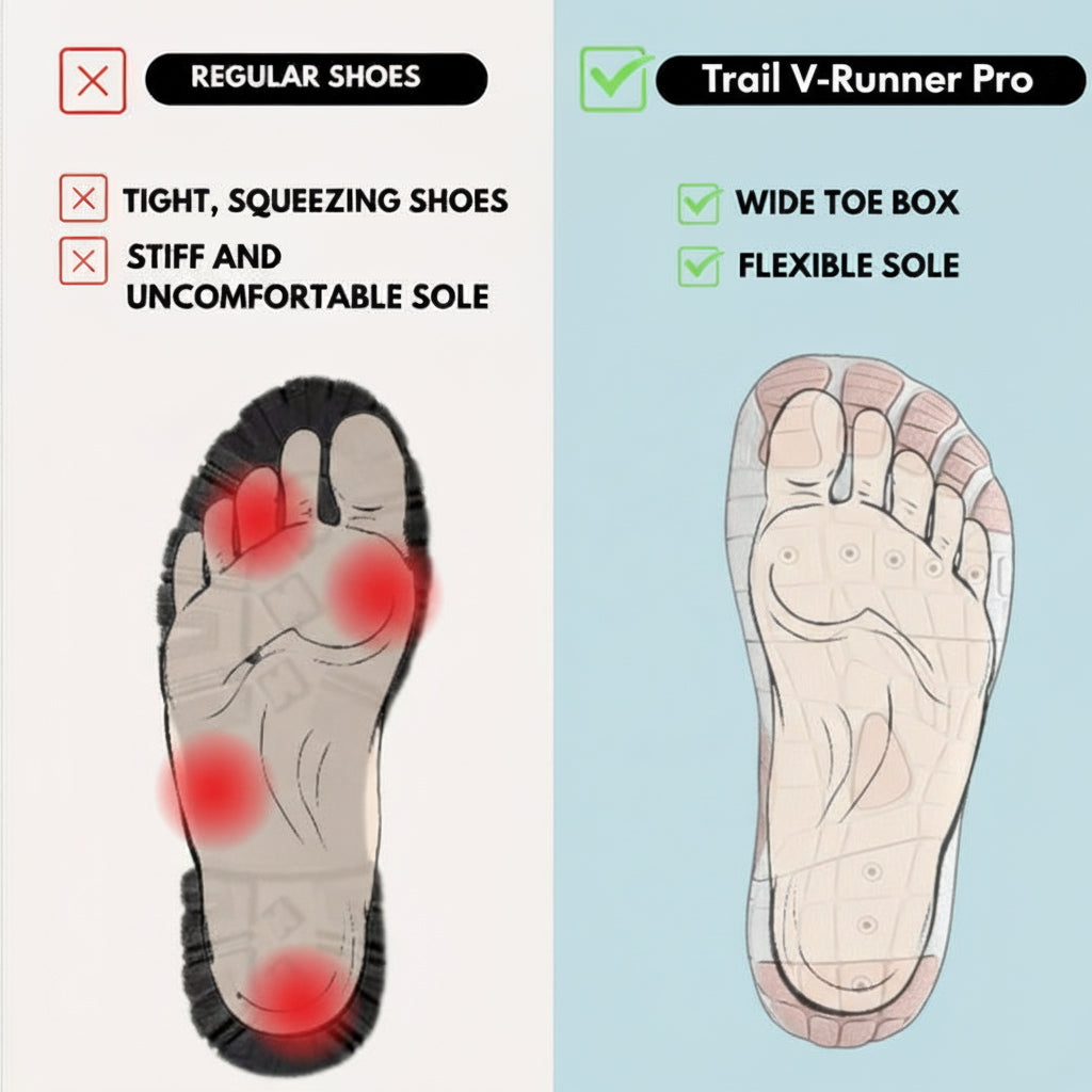 With Trail V-Runner Pro barefoot shoes, you're choosing comfort, healthy feet, and a natural walking experience. These unique shoes give you the feeling of walking barefoot while providing protection and support.